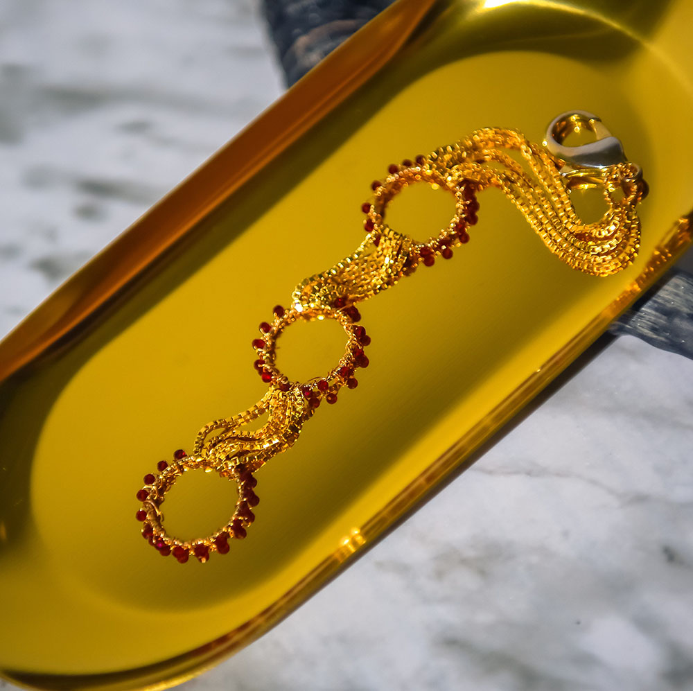 循環排列的圓珠寶石,像圍繞在太陽邊,憶起熱情綻放的美好畫面。